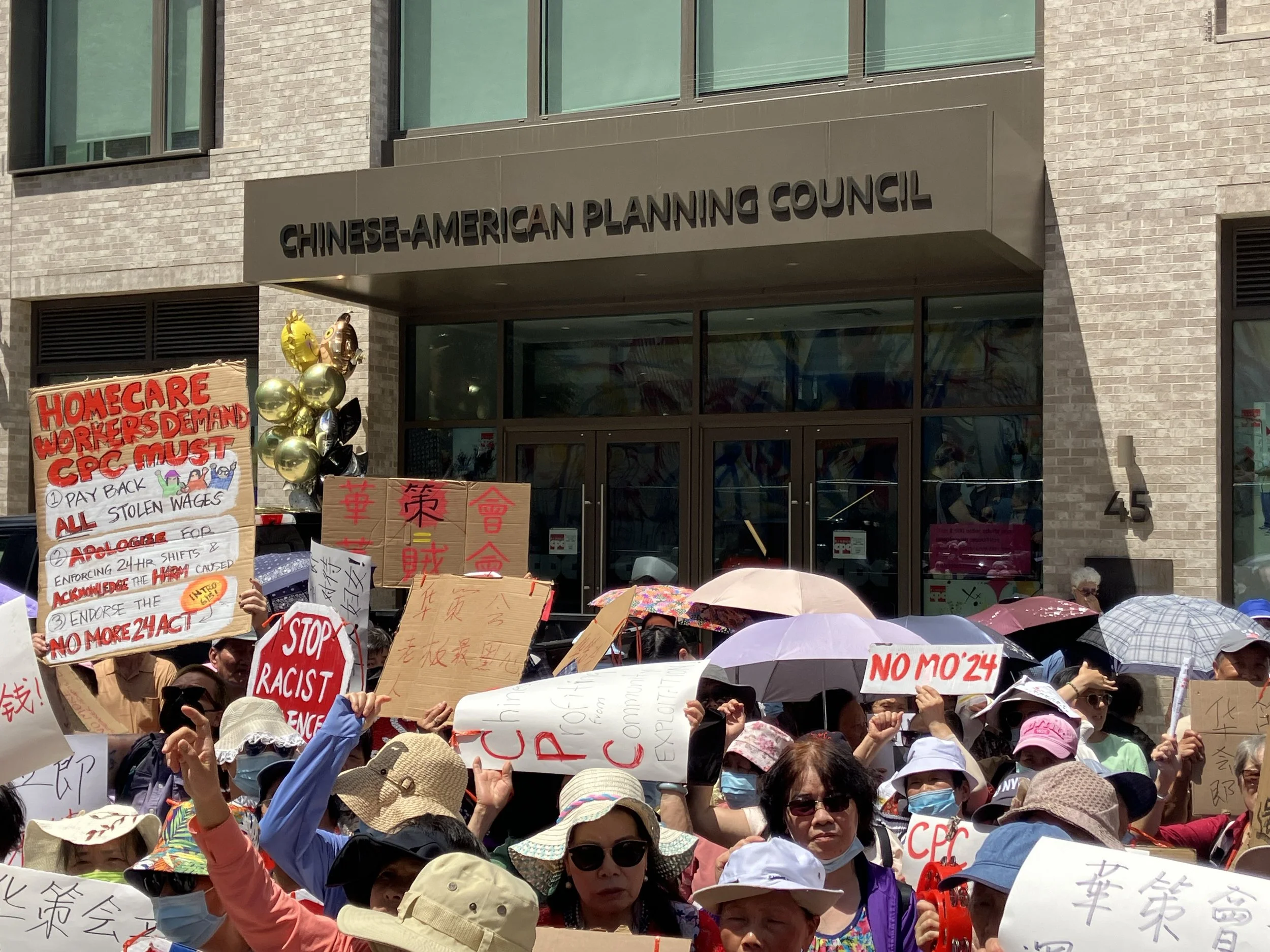 The ongoing fight to finally end 24-hour work shifts in New York City’s home care industry boiled over on Thursday afternoon outside the offices of CPC One—the Chinese-American Planning Council’s newly-opened HQ at 45 Suffolk Street—as angry home care workers rallying in intense summer heat partially shut down traffic outside the Lower East Side facility.