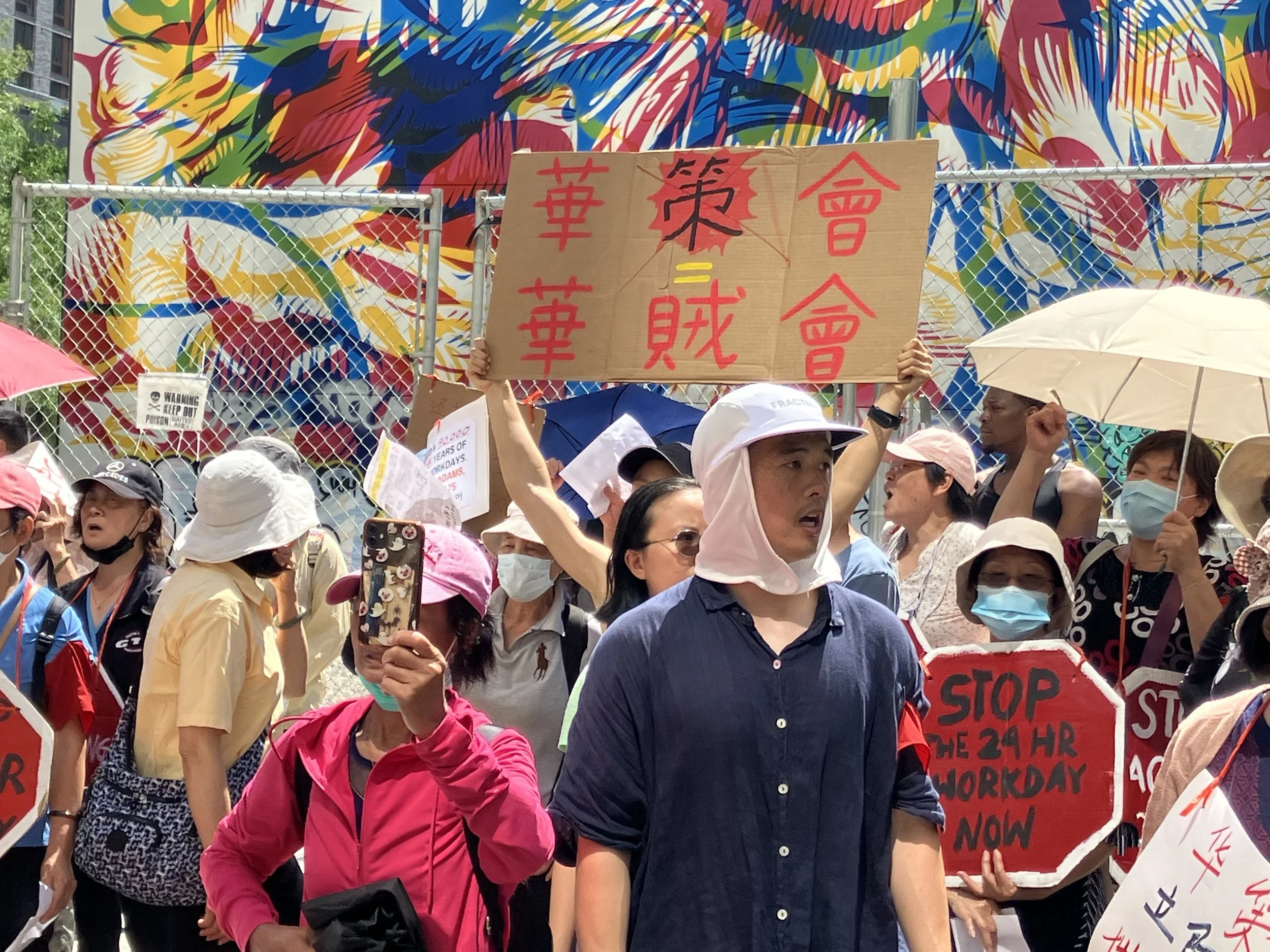 Home care workers and their supporters withstood high temps and a blistering sun outside the Chinese-American Planning Council’s HQ on the Lower East Side.