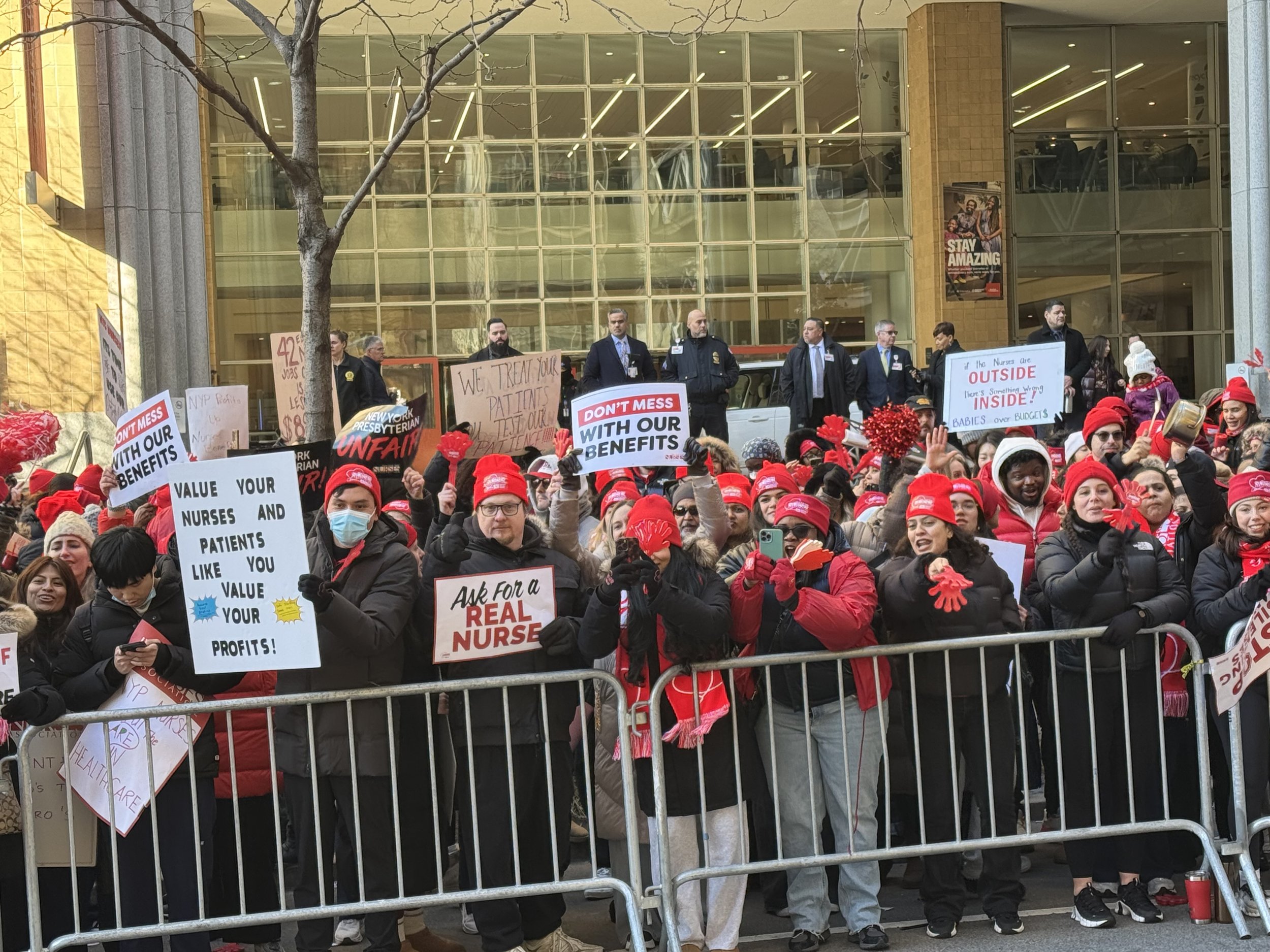 Here in New York City, thousands of nurses with the New York State Nurses Association remain on strike at New York Presbyterian, Mount Sinai, and Mount Sinai Morningside and West to maintain their healthcare benefits, safe staffing for patient care as well as secure improved protections against a spike in workplace violence.