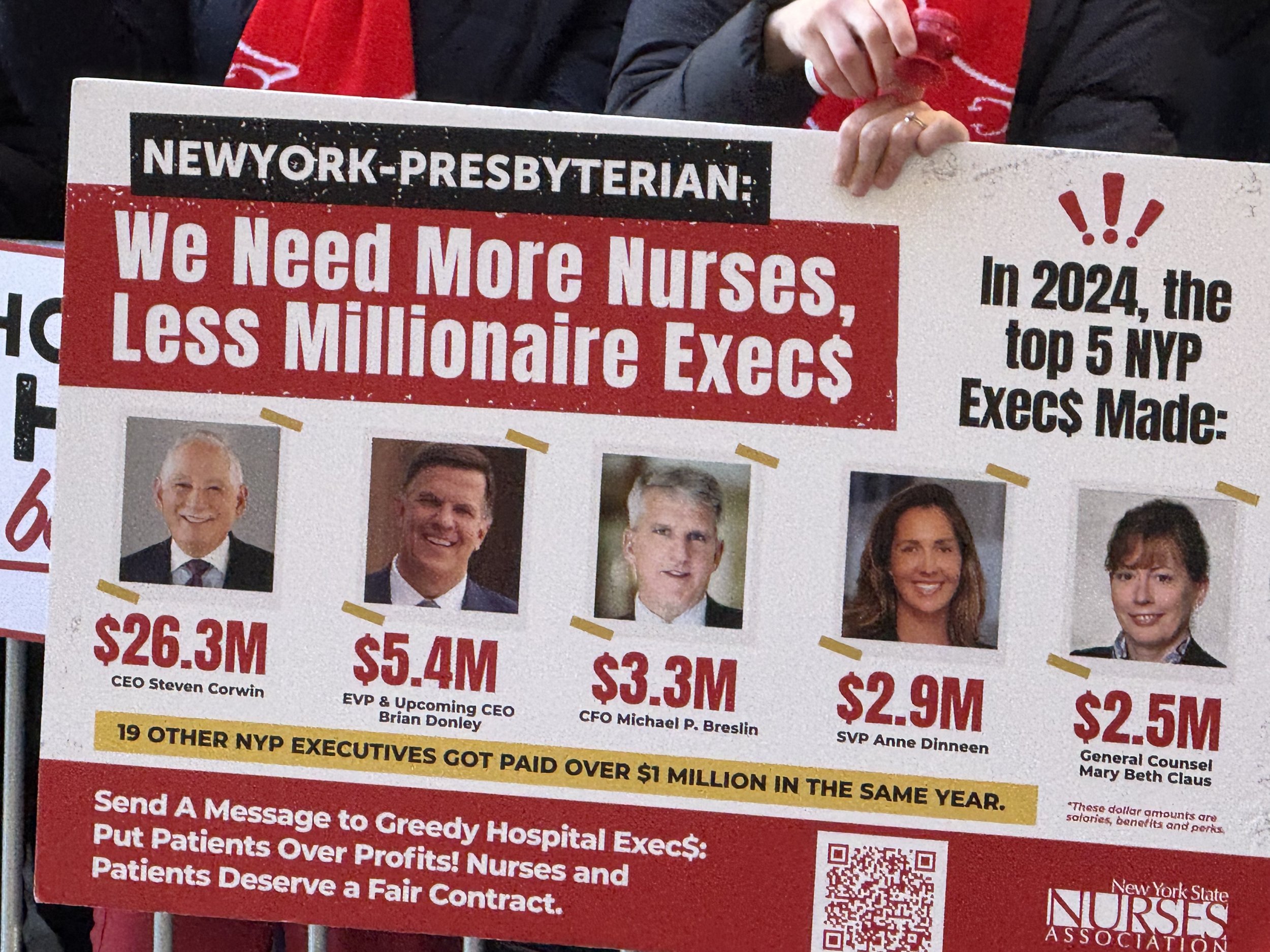 New York City hospital bosses are raking in millions as nurses report more short-staffing and increasing workplace dangers. Photos/Bob Hennelly