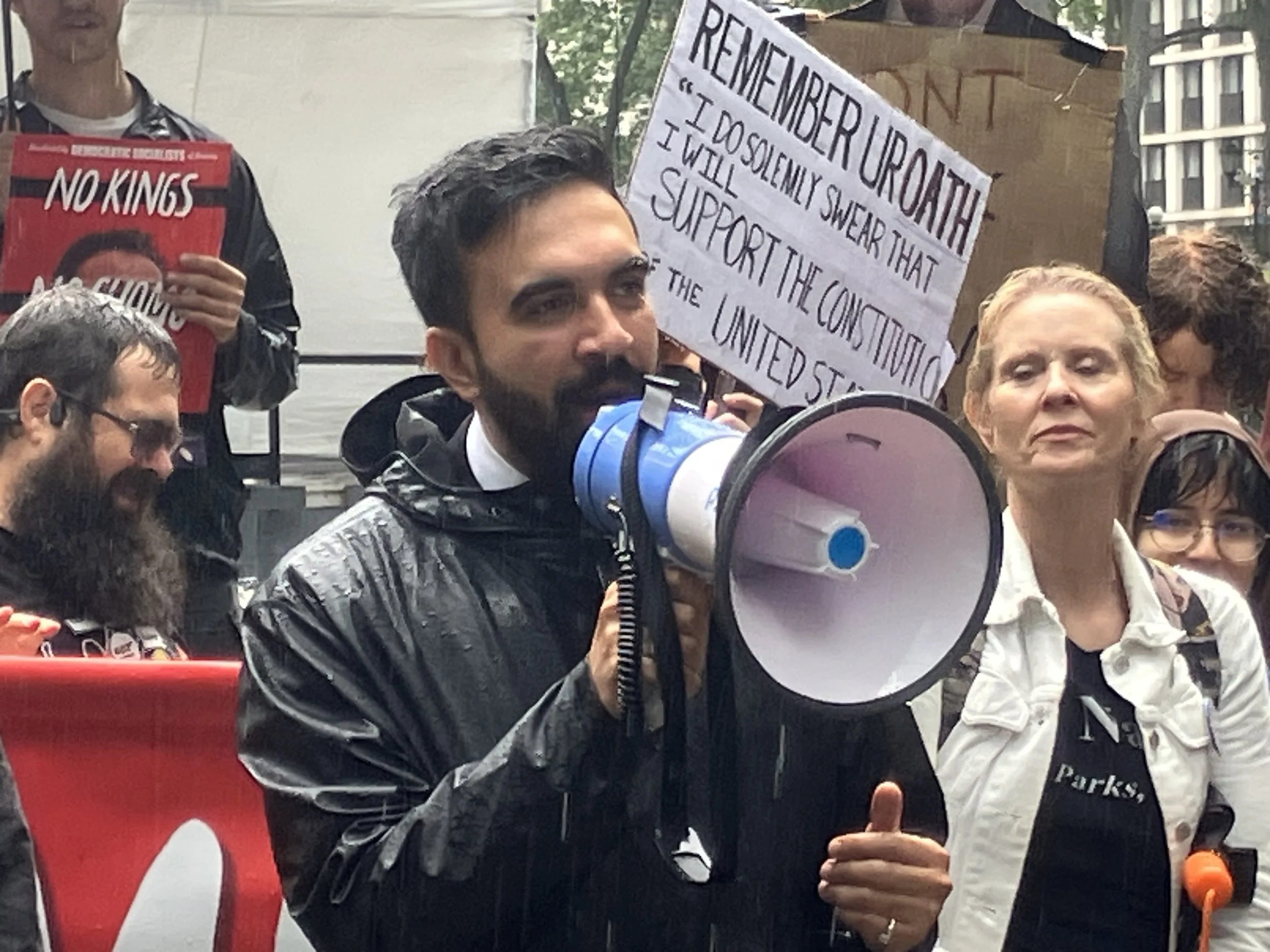 Mayoral frontrunner Zohran Mamdani addresses supporters at Bryant Park on June 14.