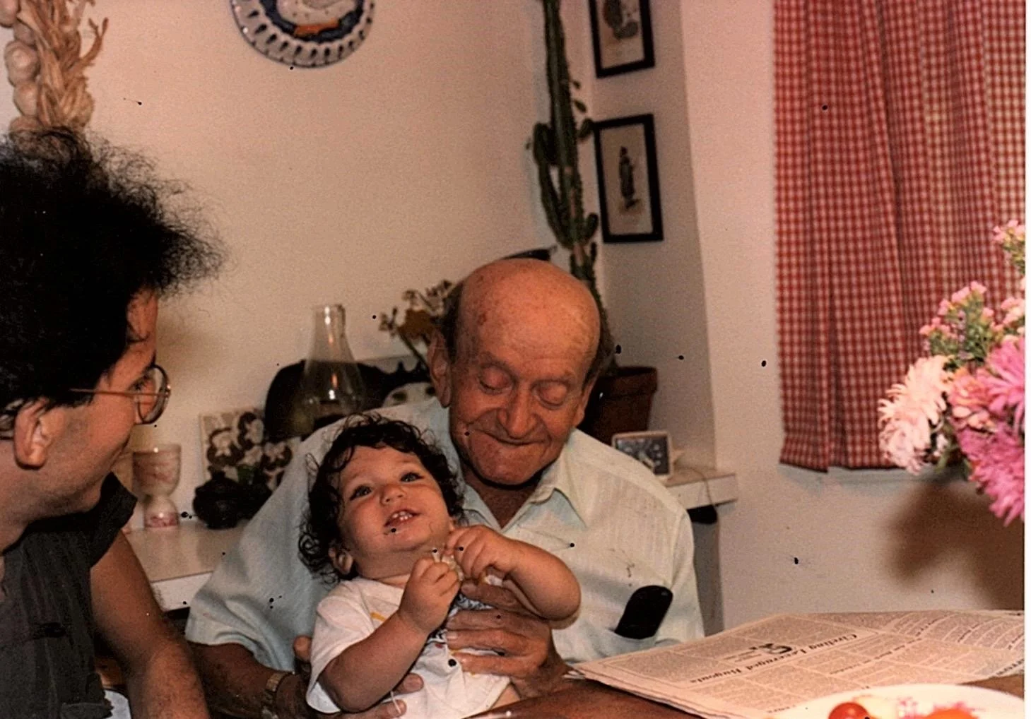 Grandfather Avram Wishnia with his great-grandson in 1984.