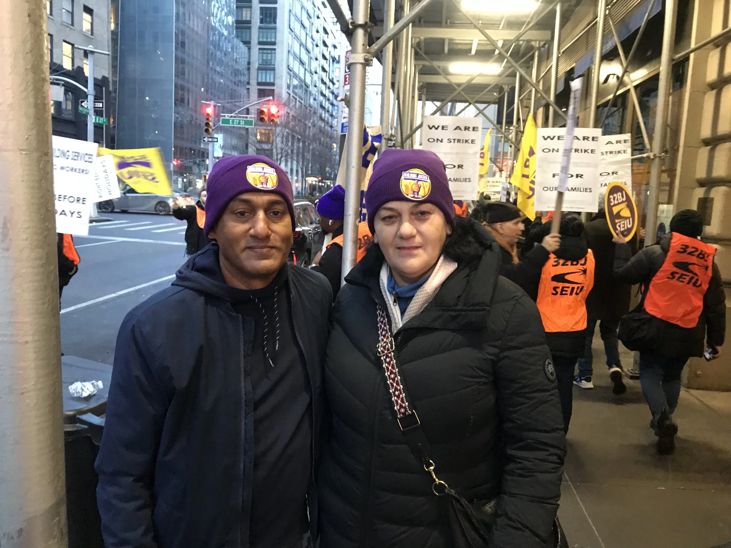 32BJ SEIU Executive Vice President Denis Johnston told Work-Bites that the union is not going to allow Planned Building Services to threaten his members’ standard of living. Above: Brian Samsingh and Sejdefa Radoncic.