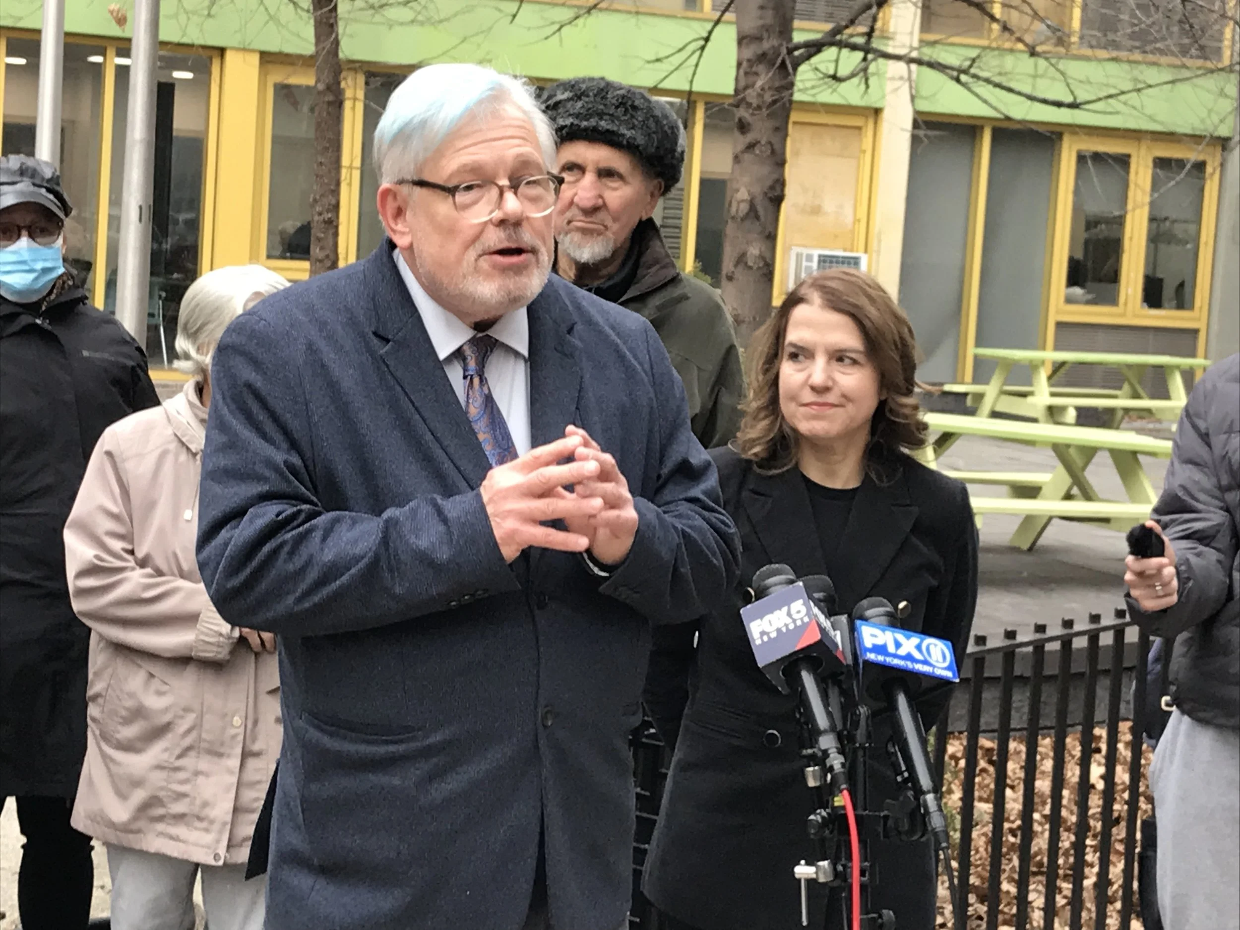Former State Sen. Tom Duane said he was “heartened” that Mayor Mamdani had visited tenants of the notorious predatory-equity landlord Pinnacle on his first day in office, but added, “I would very much like Mayor Mamdani to come take a look at this.” Photos/Steve Wishnia