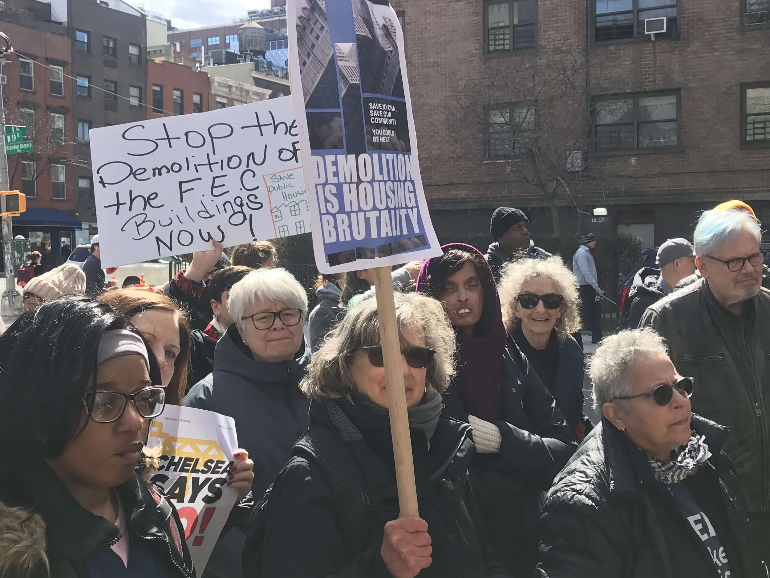 Chelsea public housing tenants and their supporters opposing demolition rally on West 19th Street in Manhattan Mar. 14.