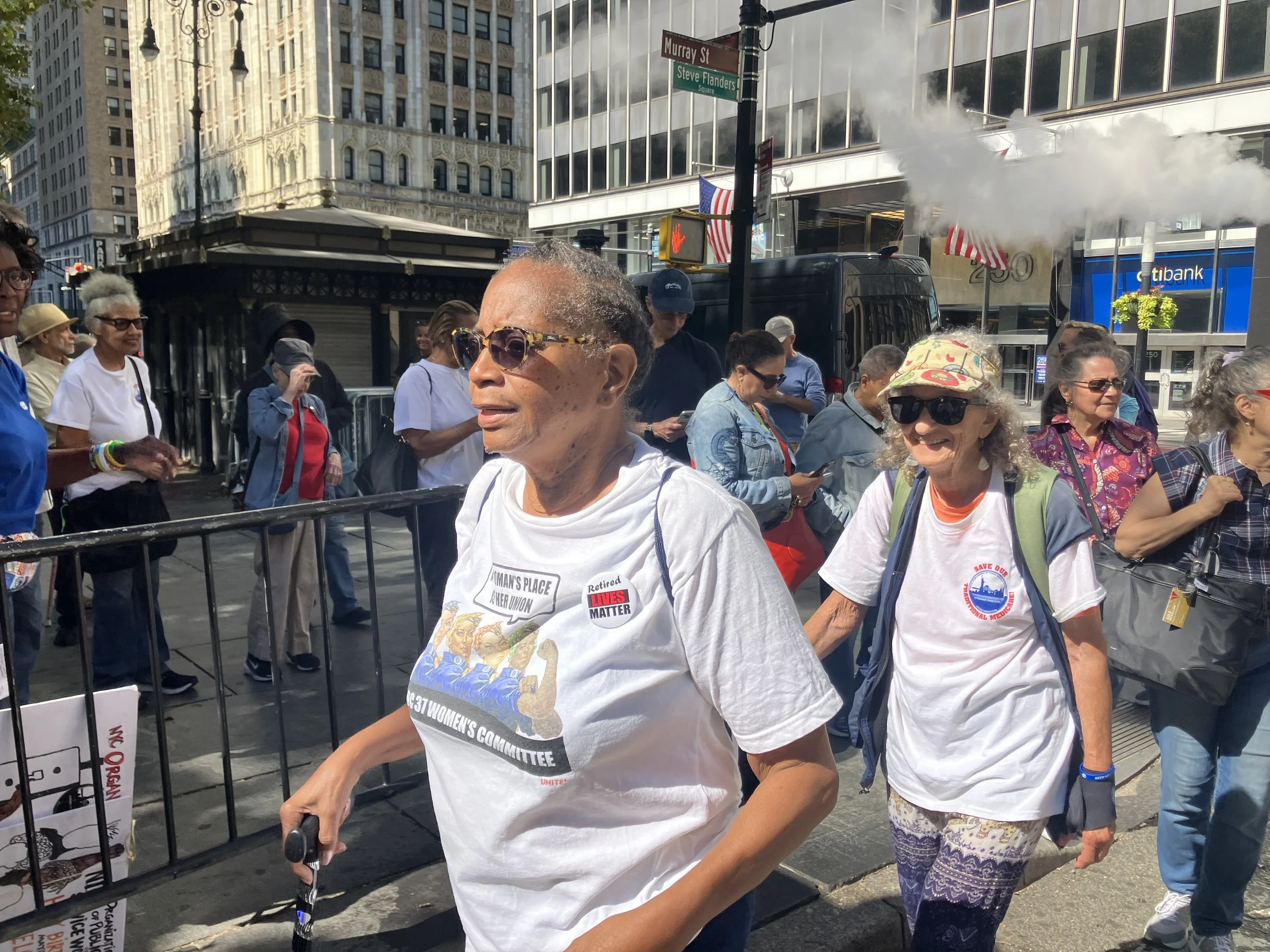 “I think they’ve decided that after they’ve used us, we’re now too expensive and they want to get rid of us and put us in health care that is just not adequate,” retired Bronx social worker Jacqueline Lutnick told Work-Bites before the rally.