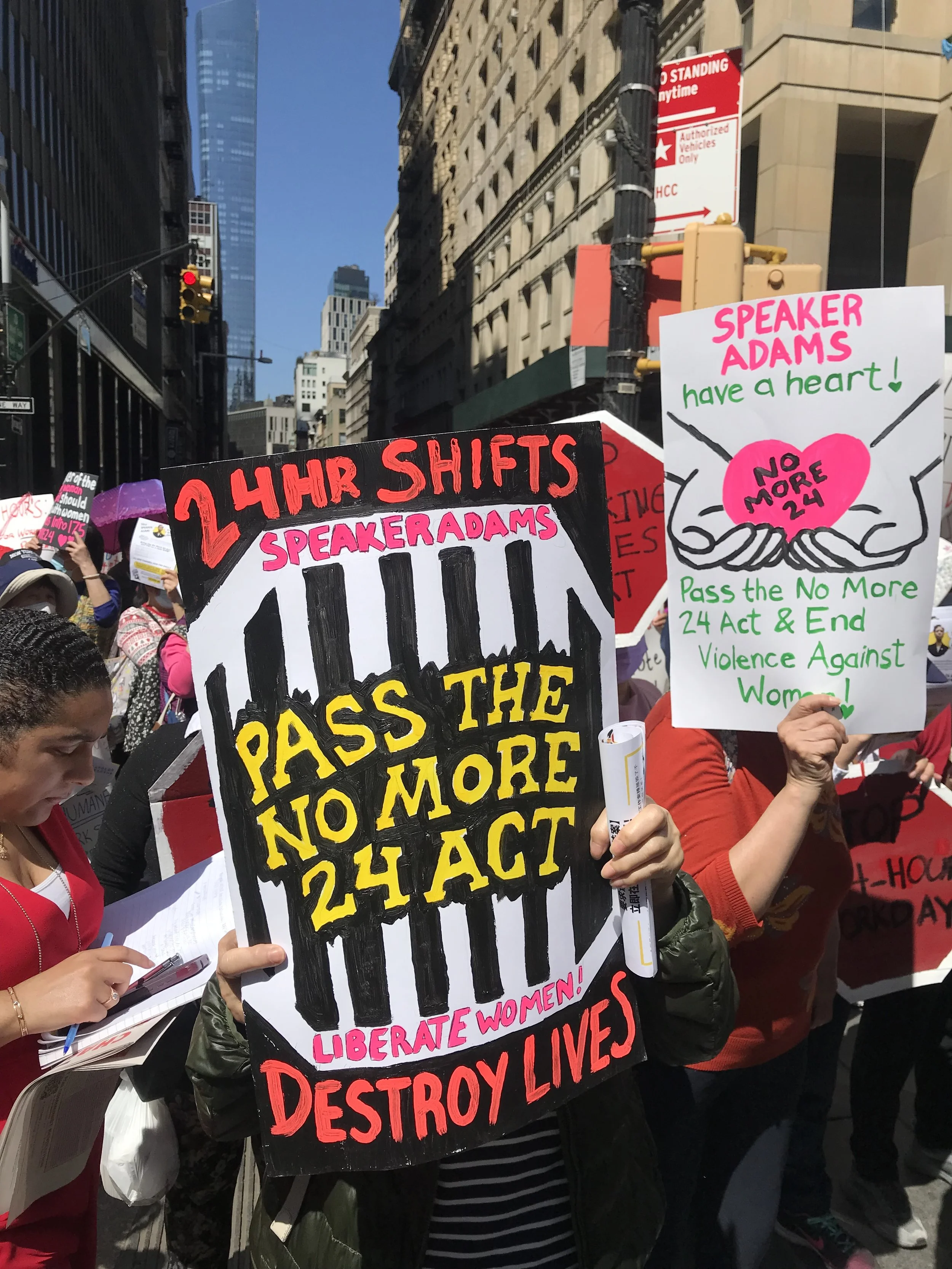 “A century and a half ago, we were in the streets fighting for an eight-hour day— ‘eight hours for work, eight hours for rest, eight hours to do what we want,’” Lum said. “Now, we’re fighting to end 24-hour shifts. And this is supposed to be a progressive city.”