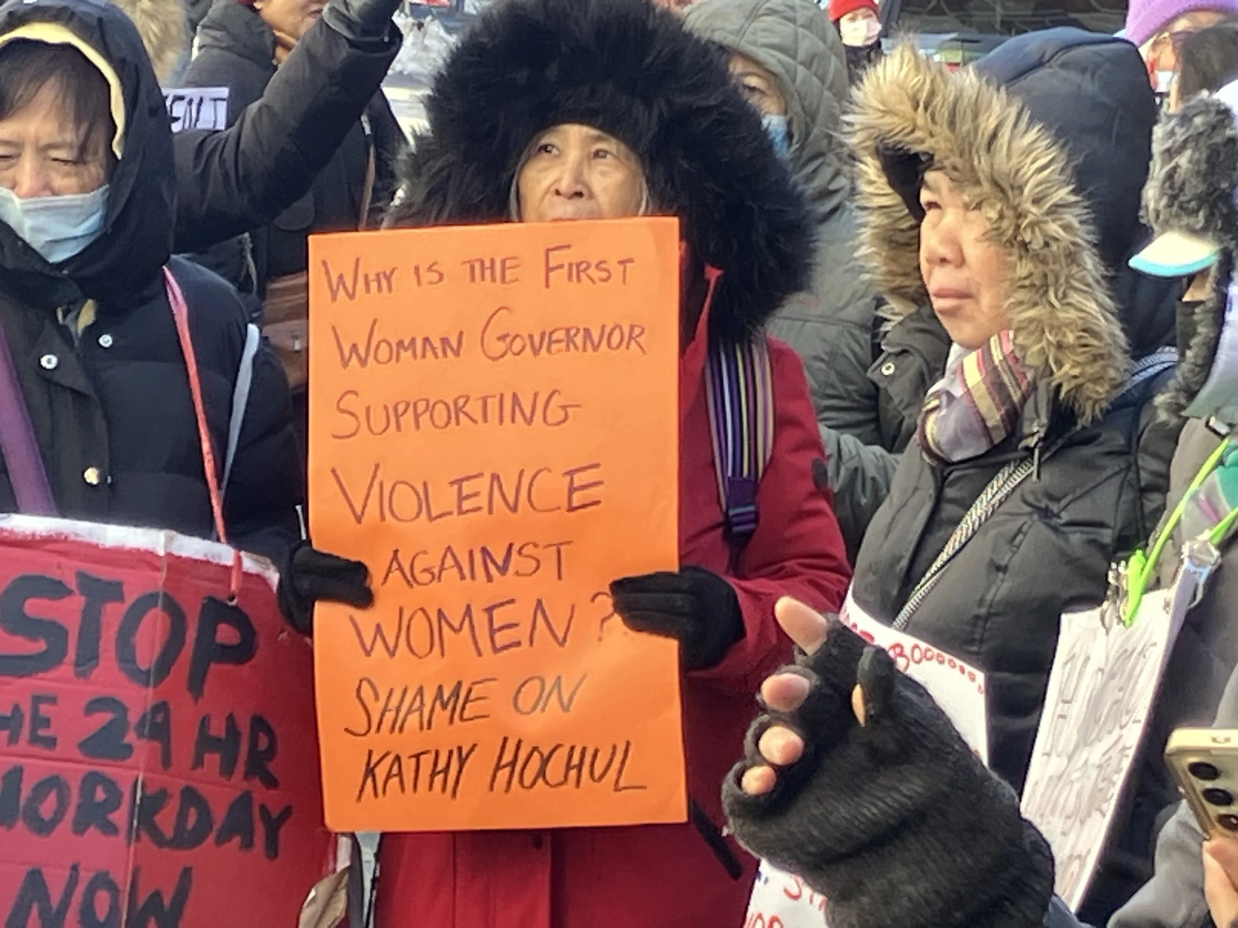 “Why is Governor Kathy Hochul supporting violence against women?” Home care workers in Brooklyn this week say, “Shame On Kathy Hochul.”