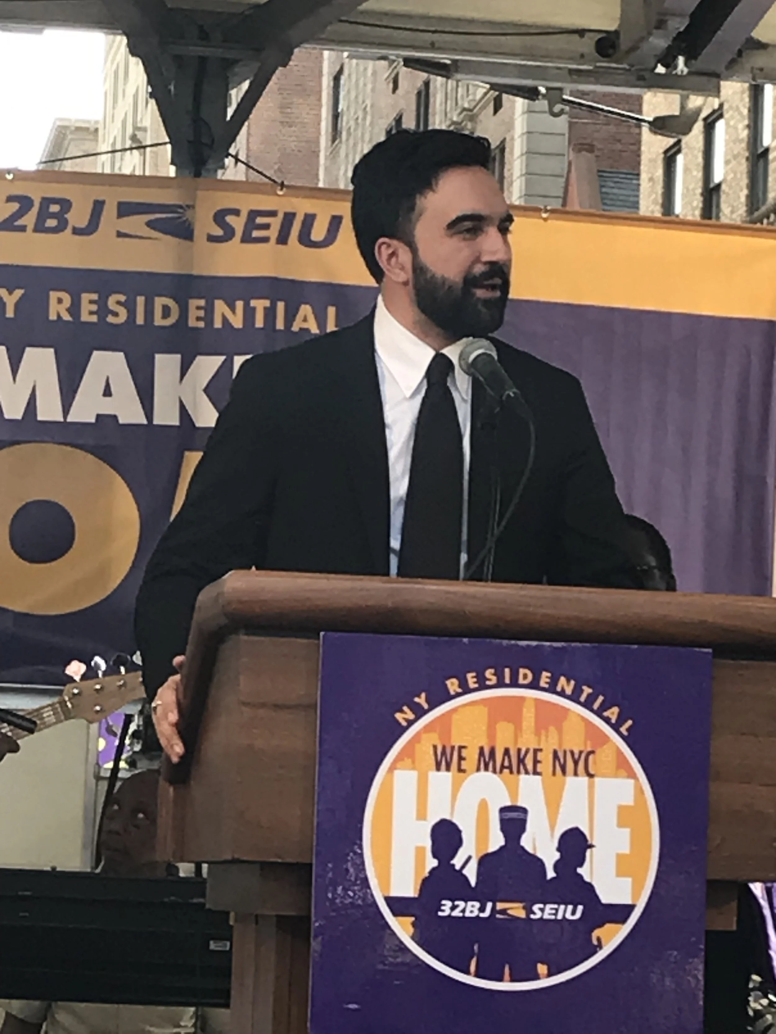 New York City Mayor Zohran Mamdani speaks out in support of 32BJ building service workers.