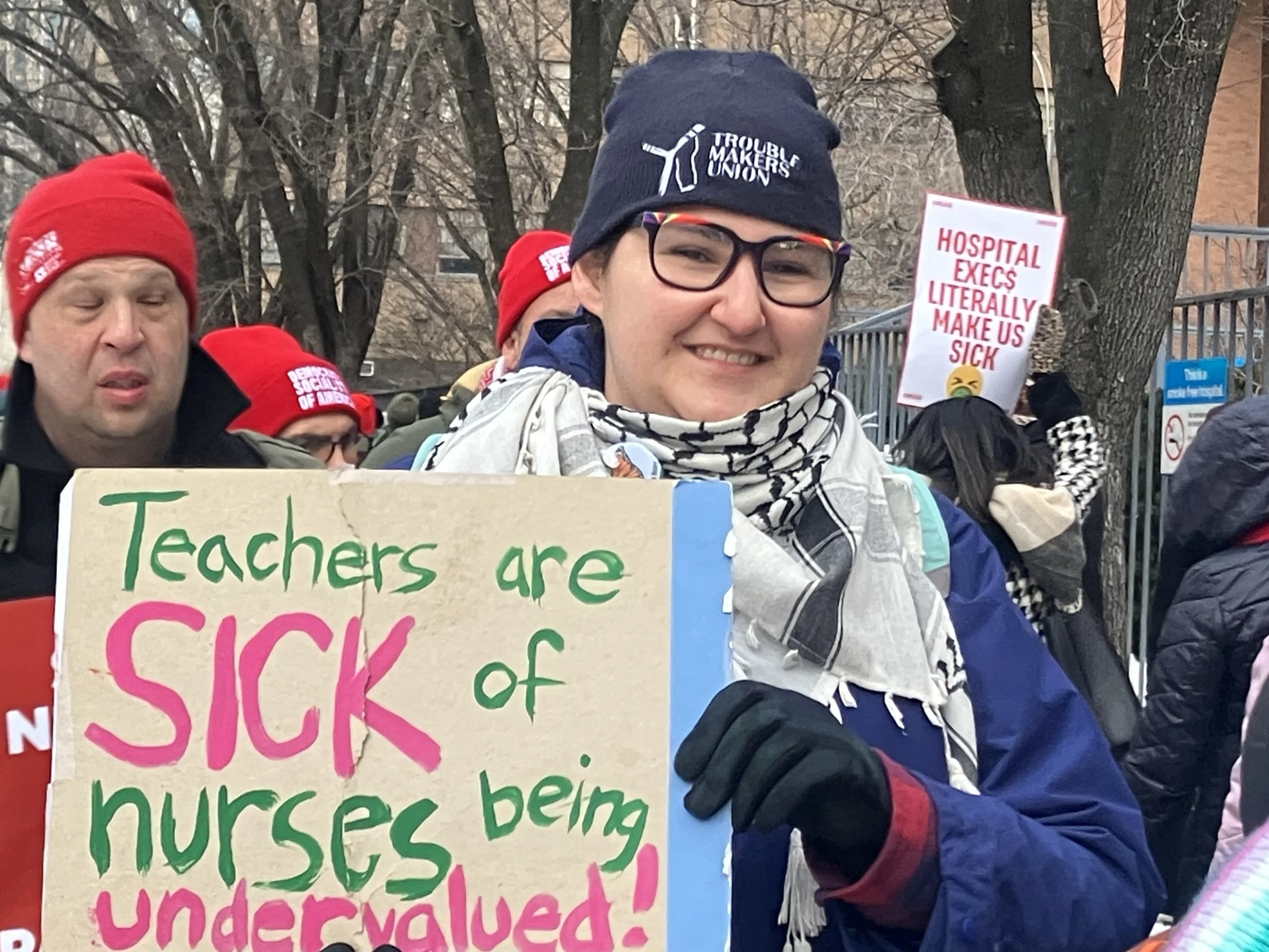 New York City educator expresses solidarity with Striking NYSNA nurses on Feb. 6.