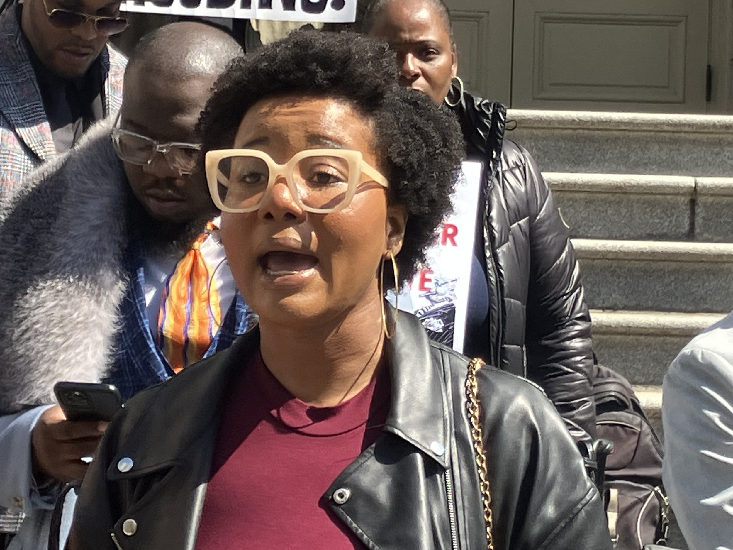 If on cue at one point during Friday’s rally on the City Hall steps—Cea Weaver, head of the Mayor’s Office to Protect Tenants, attempted to skirt by the demonstrators unnoticed.