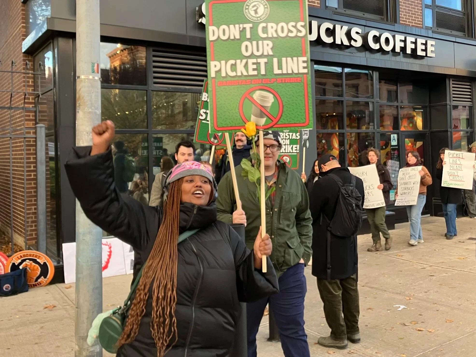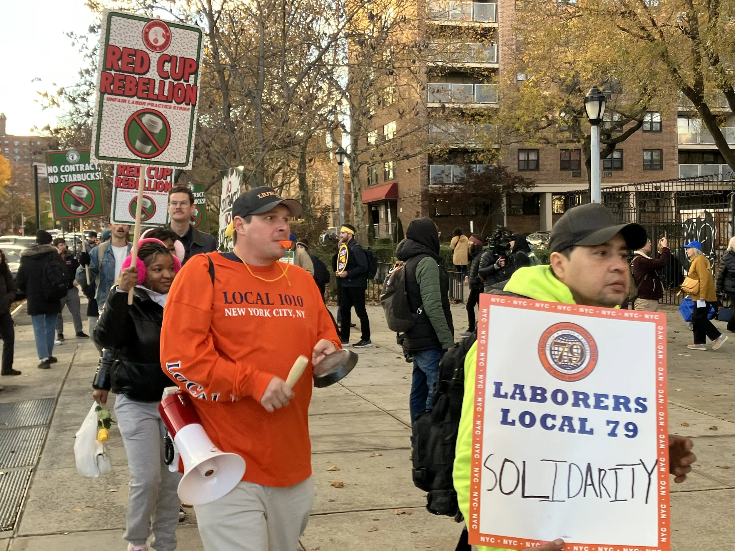 New York City trade unionists showed their solidarity with Starbucks baristas in Brooklyn last Thursday.